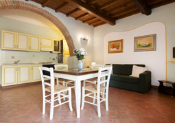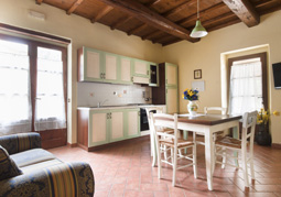 Gli appartamenti sono stati ristrutturati secondo lo stile tipico toscano contraddistinto da soffitti con travi in legno e campigiane, pavimenti in cotto, archi in mattoni antichi.
